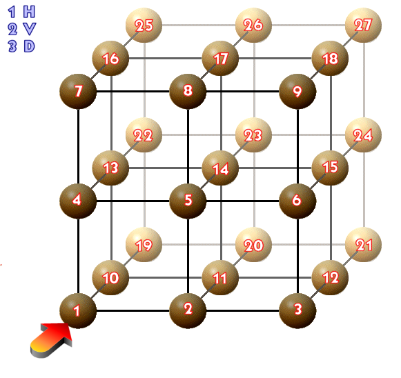 Un modo de obtener los números A,B y C sin hacer operaciones es utilizando una malla cúbica de 27 nudos
